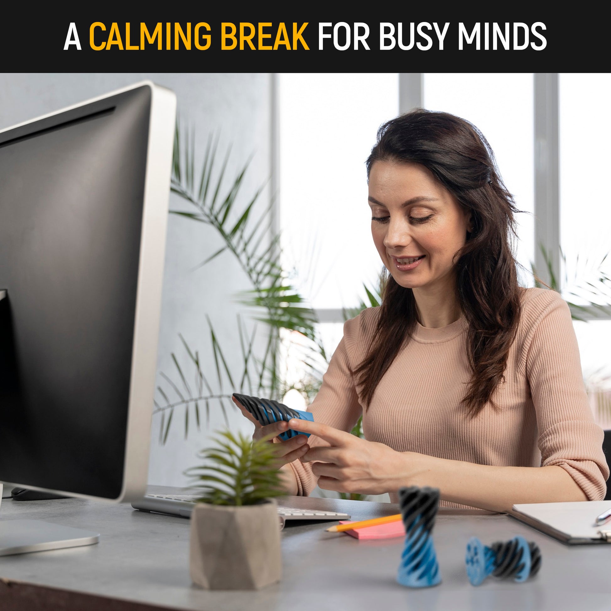Meet the Flow Trio Sculpture Set – a premium set of 3 unique kinetic fidget toys designed to calm busy minds, inspire focus, and add a moment of magic to your day. Each set includes: